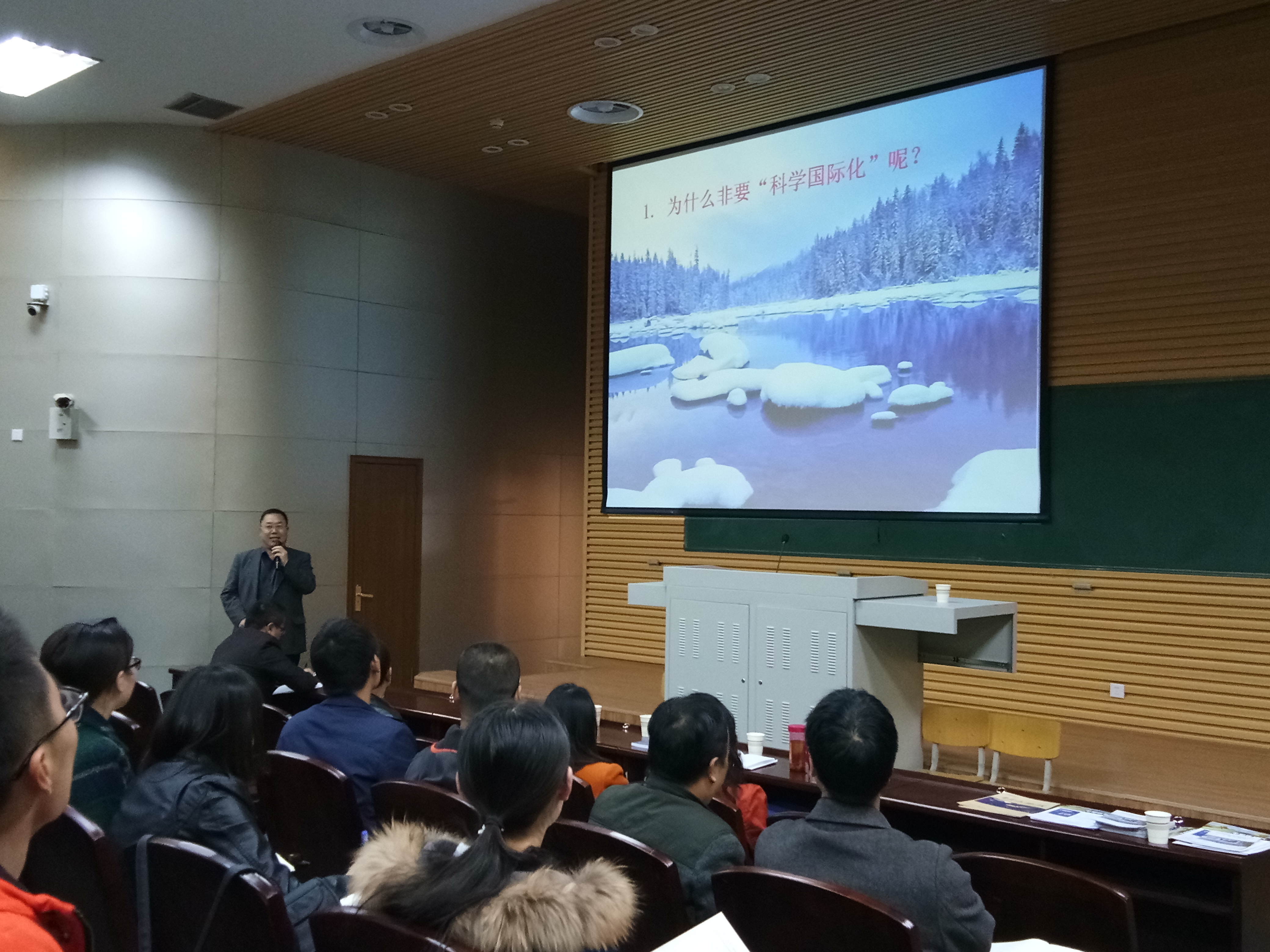 报告中,冯兆东研究员详细介绍了科技论文阅读方法与技巧,科技论文写作要领和要注意的问题,从科技论文组成、结构、内容安排等方面详细做了说明,并以写作时重点斟酌和考虑的细节作为实例,讲解了近期和远期培养科研能力的基本要求。另外,冯兆东研究员还向师生介绍了《Journal of Arid Land》杂志的投稿系统、评价体系、影响因子和审稿过程,并希望大家踊跃投稿,激励大家在科技论文写作方面取得突破,获得更好科研成果。
