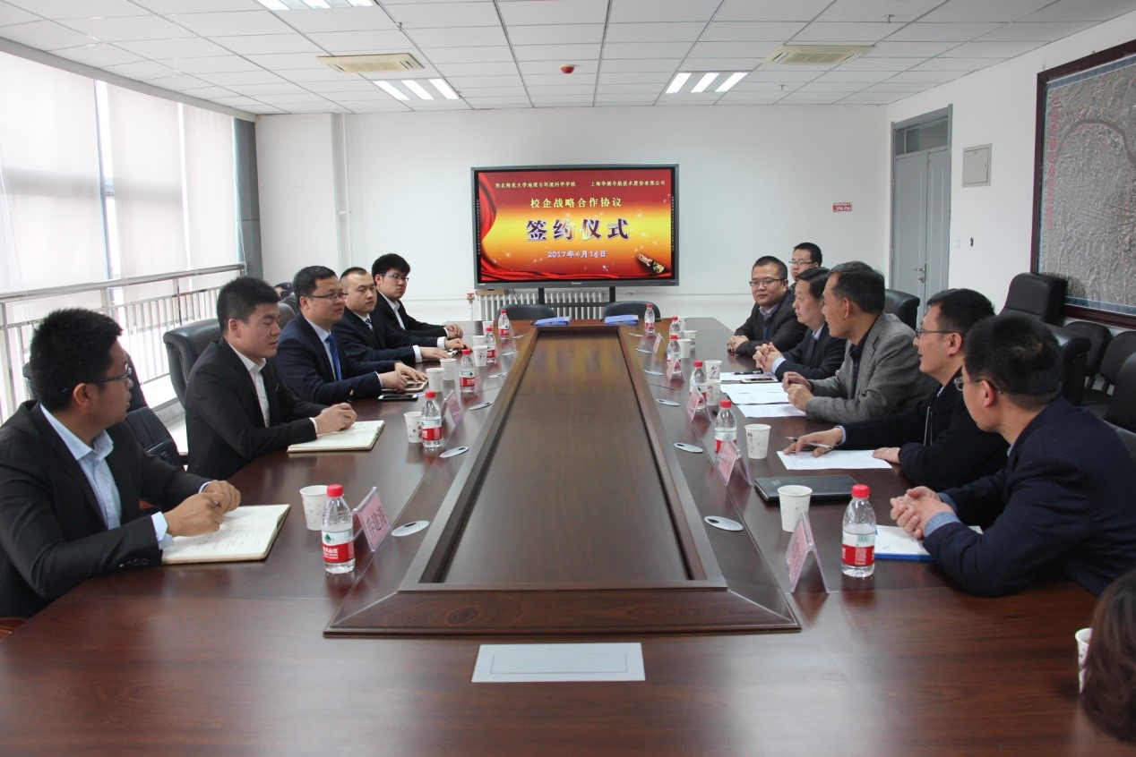 签约仪式上,我院贾志斌书记和上海华测侯勇涛副总经理先后致词,双方就人才培养、科技研发和成果转化建立战略合作关系达成一致。张明军院长和侯勇涛副总经理代表双方签署了校企战略合作协议。王兴副处长指出,双方此次战略合作标志着beat365官方网站在非师范专业人才培养、校企合作迈出了坚实步伐,是“大众创业万众创新”新形势下提升教学质量、培养优秀人才的有益探索,相信此次合作对于我校地理信息科学专业人才培养和科研合作必能发挥重要作用。