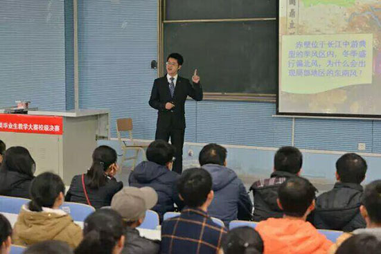 经过2017届师范类毕业生教学技能大赛院级初赛、校级复赛的重重选拔,12名学生过五关斩六将杀进了决赛。beat365官方网站的李旭亮便是其中的佼佼者。
