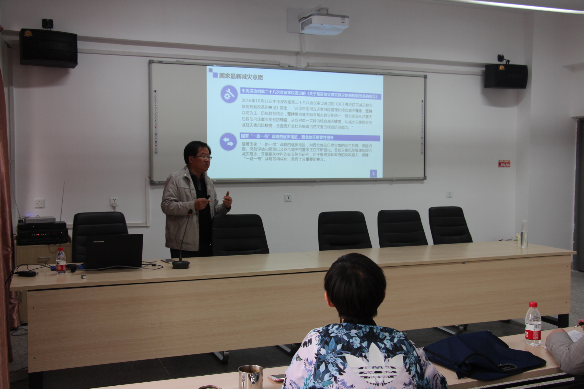 报告中,周旗教授从研究背景、工具改进、研究实例、未来展望四个方面,详细介绍了陕西省灾害监测与机理模拟重点实验室在国家最新减灾意愿的宏观政策下,对灾害背景灾害风险与脆弱性所作的研究。
