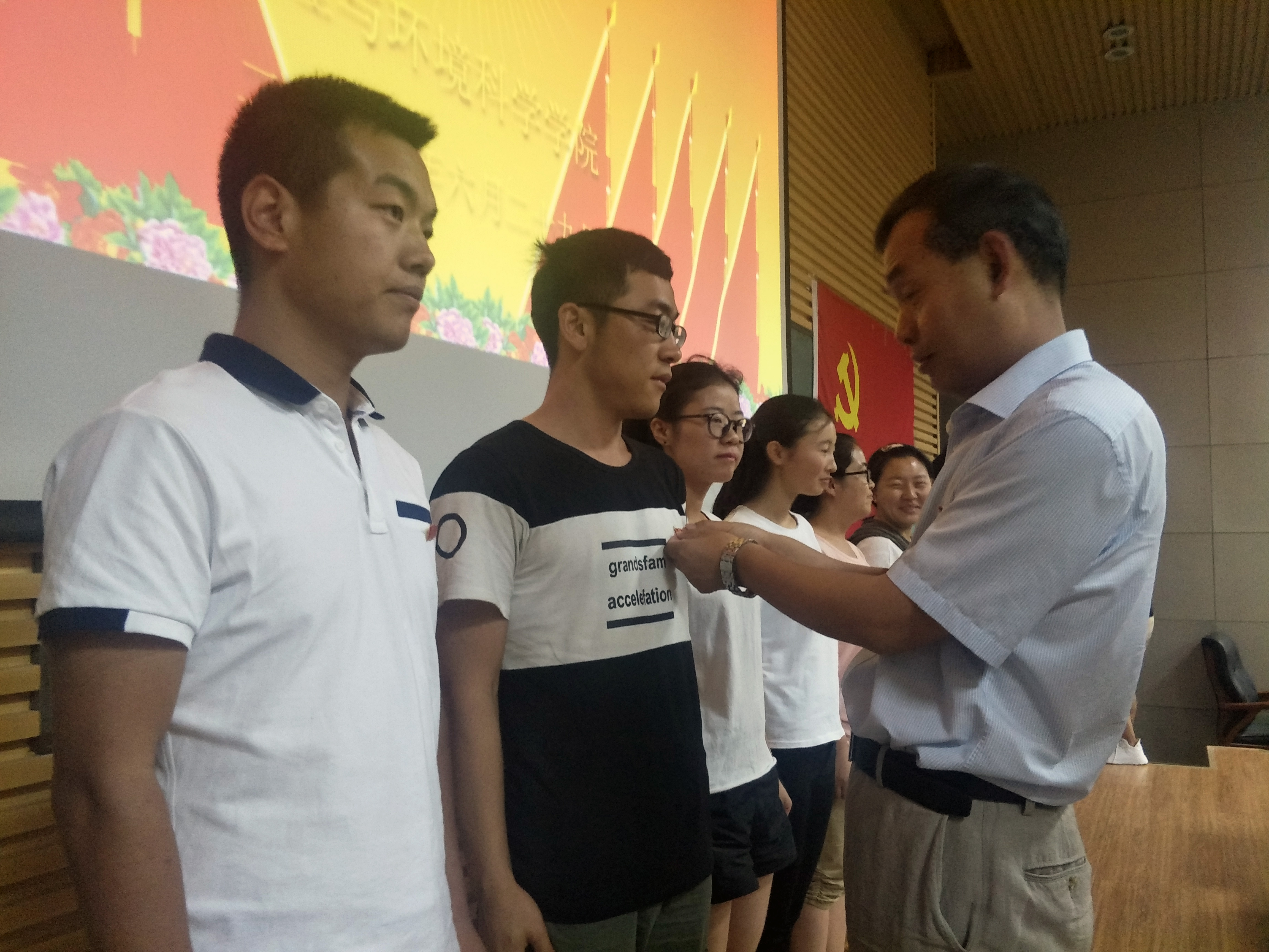 6月29日下午,学院党委举行研究生、本科生党支部“庆祝建党96周年”主题党日活动,举办了为新党员佩戴党徽、新党员入党宣誓仪式、老党员重温入党誓词、专题党课和省十三次党代会精神宣讲会。学院党委书记贾志斌、党委副书记王招祥、党委委员副院长杜波,学生党支部书记焦亮、张学斌、成亮、钟耀、王继伟、师银芳等老师,办公室主任白燕、团委书记马潜、学生辅导员安晓燕以及研究生、本科生党支部150余名党员出席活动。主题活动由王招祥副书记主持。