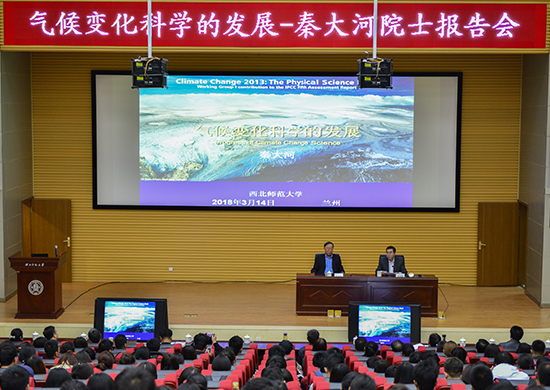 3月14日,中国科学院院士、中国科学院学术委员会主任秦大河一行访问beat365官方网站,进行学术交流并受聘为学校特聘教授。聘任仪式前,秦大河院士在新校区毅然报告厅为全校师生作了题为《气候变化科学的发展》的学术报告。报告会由陈克恭研究员主持,副校长李朝东教授代表学校向秦大河院士颁发聘书。