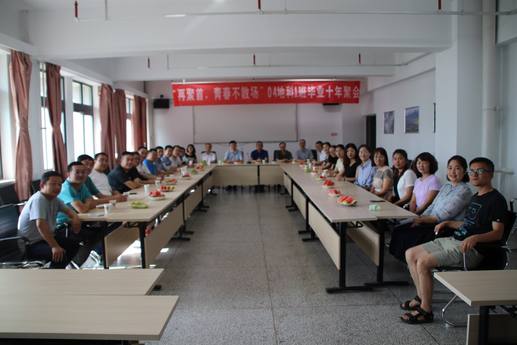 2018年7月21日,2004级地理科学1班本科毕业26名校友回到母校以“再聚首,青春不散场”为主题开展师生座谈会、参观校史馆等毕业十周年系列纪念活动,党委贾志斌书记、王招祥副书记、地理科学系胡梦珺主任、地科1班班主任辛存林老师及代课老师张勃老师、张志斌老师、赵生龙老师、杨东老师等参加了校友座谈会。