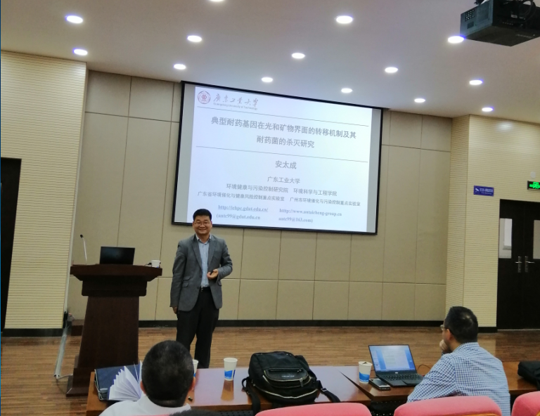 安太成教授介绍了其研究团队开展的最新前沿研究,围绕天然环境中的光和矿物能否导致耐药菌的传播及其光催化杀灭的可行性等研究问题,发展了天然自净化的污染治理新方法,得出了光电催化不但能够有效杀灭耐药细菌,而且能完全消除耐药基因的重要结论。