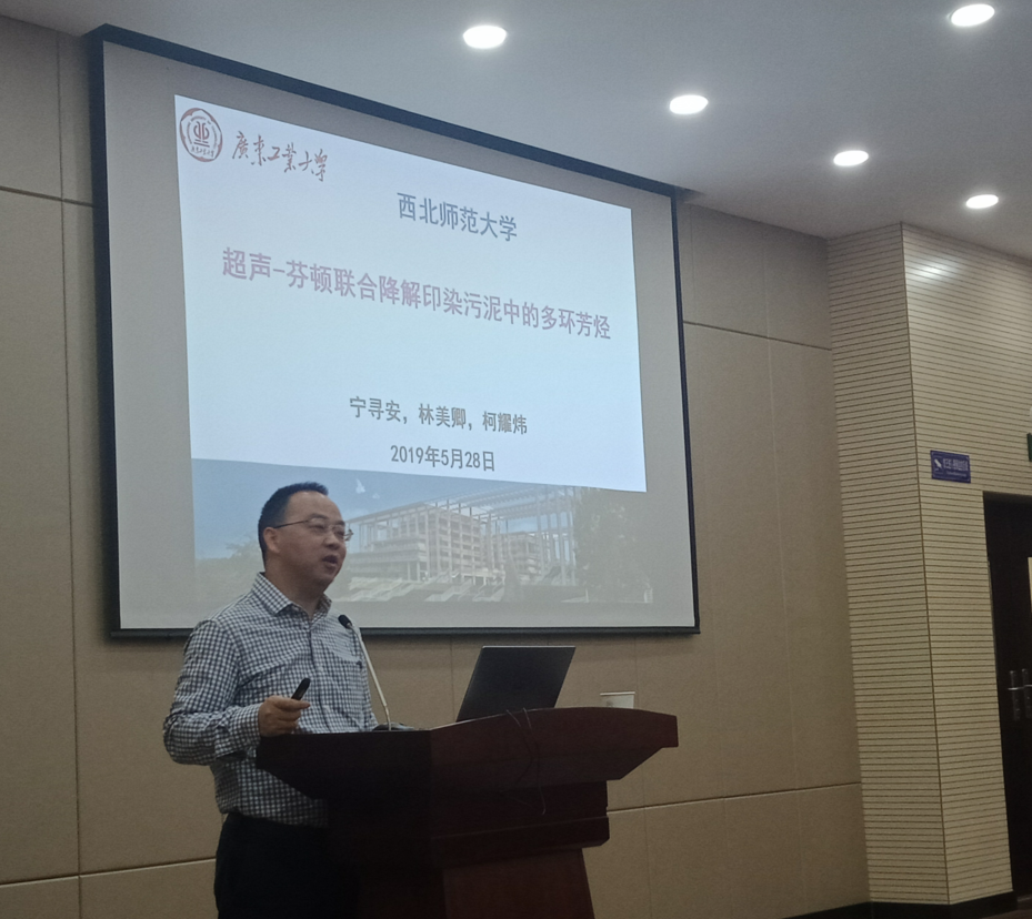 应beat365官方网站邀请,全国工程专业学位研究生教育指导委员会环境工程领域协作组副组长、广东省固体废物资源化与无害化工程技术研究中心主任、广东工业大学环境科学与工程学院院长宁寻安教授于5月28日来我院作学术交流,并做了题为“超声-芬顿联合降解印染污泥中的多环芳烃”学术报告。我院师生100余人参加了报告会,报告由院长张明军教授主持。
