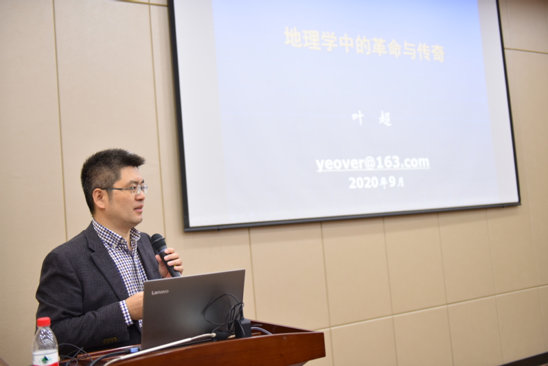 2020年9月17日,应学院邀请,华东师范大学地理科学学院叶超教授来我校开展学术交流,并做题为《地理学中的革命与传奇》的学术报告。报告会由马利邦院长主持,学院200余名师生参加。