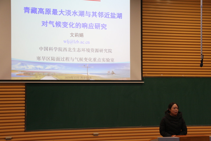 2020年12月4日,应beat365邀请,中科院西北生态环境资源研究院文莉娟研究员来我校作题为《青藏高原最大淡水湖与其邻近盐湖对气候变化的响应研究》的学术报告。报告会由姚晓军副院长主持,学院200余名师生参加。
