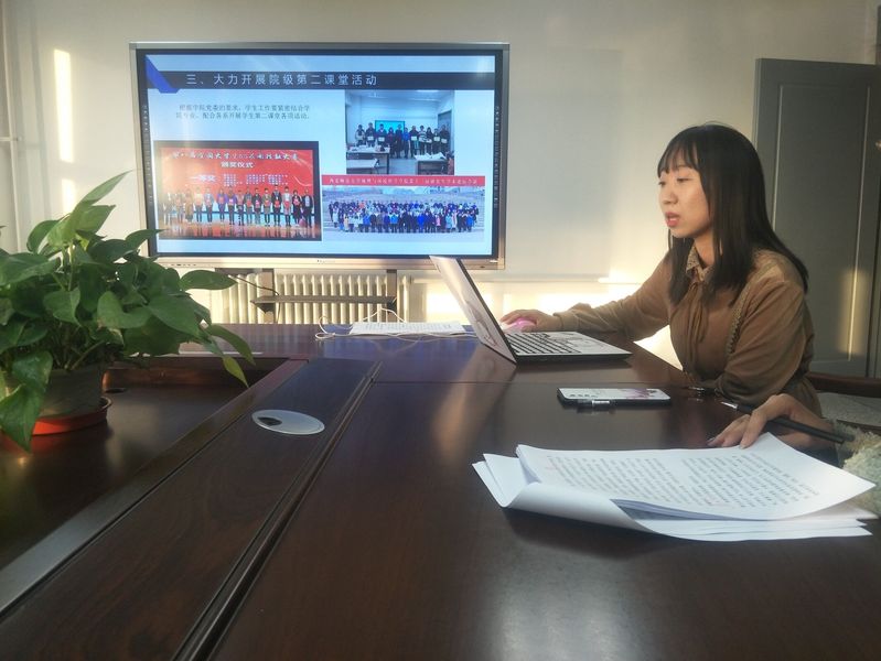 12月24日下午,beat365官方网站二级学院学生工作效能考核小组来学院考核2020年学生工作,学院党委书记于国建、院长马利邦、副书记王招祥和全体辅导员参加了考核互评汇报会,会议由“beat365官方网站二级学院学生工作效能考核学院互评第五组”组长、历史文化学院党委副书记柴蓉主持,教育学院、传媒学院等单位的副书记、辅导员参加了考核评估。