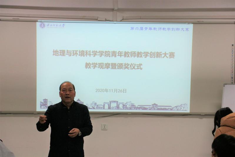 2020年11月26日晚,学院在801会议室举行第六届青年教师教学创新大赛教学观摩暨颁奖仪式,教务处处长王治和教授、学校教学督导马正学教授、张定强教授、许琰教授、学院领导、学院教学督导、学院青年教师和部分本科生参加了会议。会议由于国建书记主持。