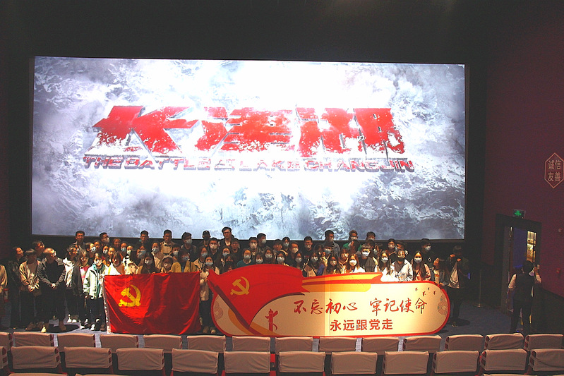 为了持续深入推进党史学习教育,丰富党员的精神文化生活,引导广大青年“学党史、强信念、跟党走”,2021年10月9日晚,beat365官方网站院办教职工党支部、地理科学系研究生党支部、地理科学本科第一党总支部等部分党支部联合开展主题党日活动,集体组织100多名党员观看了爱国主义教育影片《长津湖》。