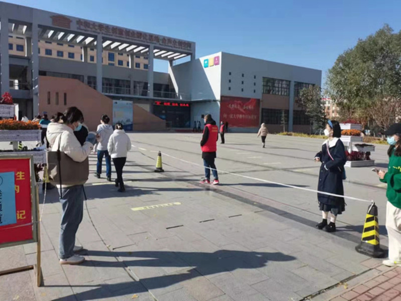 10月21日,学校疫情防控工作领导小组下达紧急通知,学院第一时间召开辅导员工作会议研究部署核酸检测工作,切实保障我院学生生命安全和身体健康。六次全员核酸检测过程中,学院党委副书记陈建海、学生辅导员全程到岗,来回奔波于兰天公寓、校本部、新校区三个核酸检测点,监督、组织学生有序进行检测工作,整个过程井然有序,没有遗漏一名学生。“同学们戴好口罩,准备好健康码,有序排队”这是学院团委书记曹珍璇老师在组织学生做核酸期间最常说的一句话。目前,学院1300余名在校生在辅导员的精心组织下保质保量全部参加了六轮核酸检测。