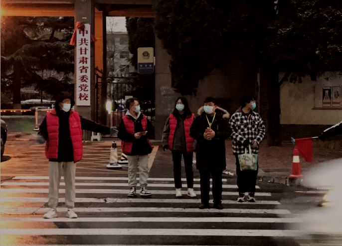在学校实行“三隔”方案期间,为保证学生有序往返公寓与餐厅之间,减少人员聚集和保持空间间隔,学院全体辅导员在兰天公寓、校本部西门、党校公寓北门、新校区餐厅广场与承担起值班任务,每天坚持按时到岗值班,耐心提醒同学们行走保持一米间隔,亲自指挥同学安全通过马路,为常态化疫情防控工作筑牢屏障,用行动诠释了学生工作者应有的使命和担当。特别是11月6日下午,当时兰州气温骤降至零下6摄氏度,天空雪花纷飞,路面积雪湿滑,校本部南门来往车辆众多,我院曹珍璇、田洪宇、周宇、李雅薇四名辅导员老师坚守岗位,紧紧盯着每一位过路的同学,密切关注来往车辆,不断提醒大家注意安全,在寒风中一站就是4个小时,为的就是保护同学们的交通安全。