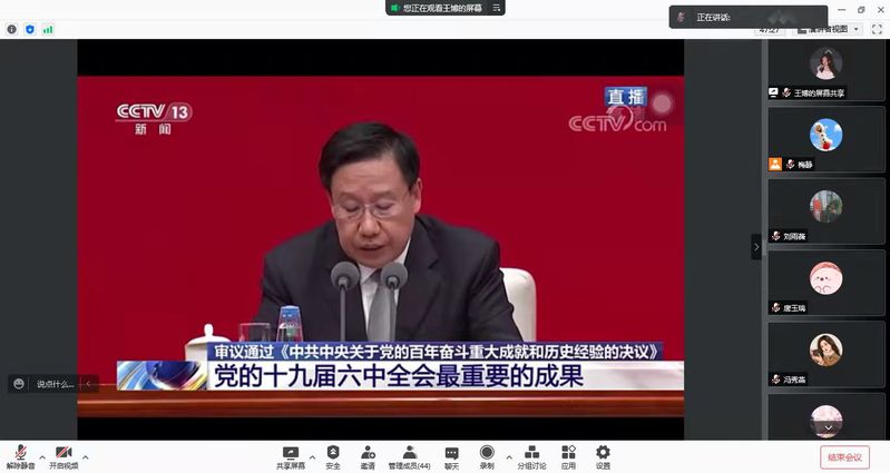 11月12日上午,beat365官方网站团委以学生党支部、班级团支部为活动载体,采用线上方式,组织近400余名学生党员、团员青年观看了“党的十九届六中全会精神”新闻发布会。