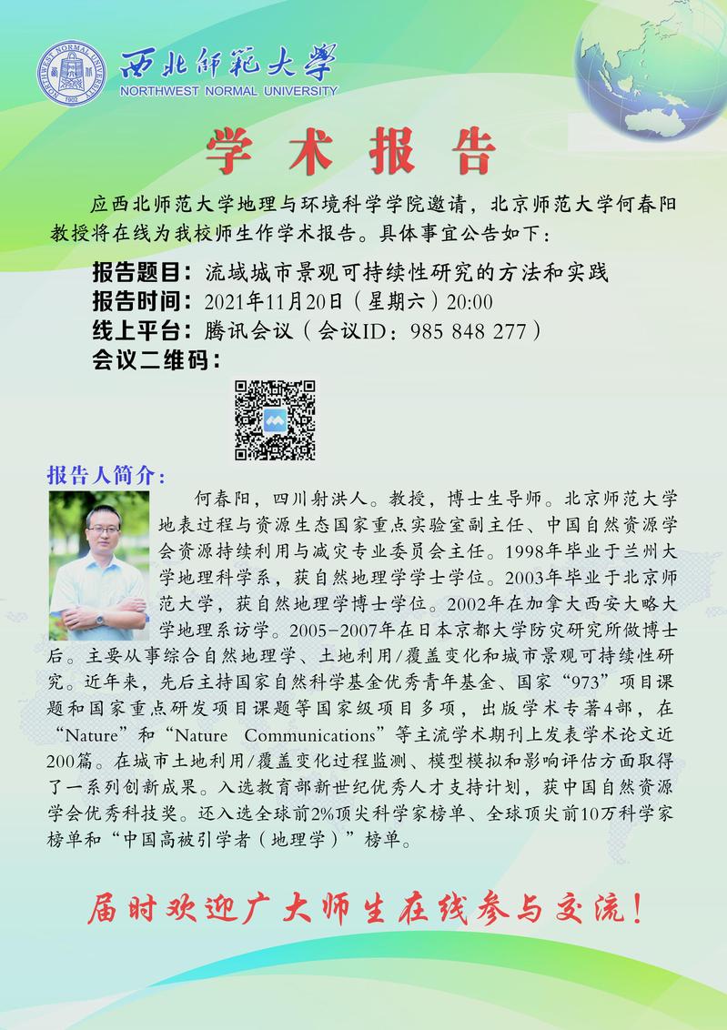 beat365官方网站前沿学术报告 2021-22期: 流域城市景观可持续性研究的方法和实践