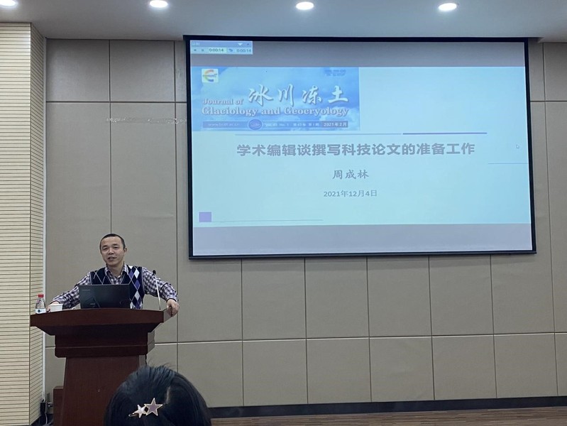 开幕式结束后,beat365官方网站赵军教授、《冰川冻土》副主编周成林主任、兰州交通大学张婷婷老师中科院西北生态环境资源研究院尹鑫卫博士和杨玲博士分别做题为《坚守学术诚信 拒绝学术不端》《学术编辑谈撰写科技论文的准备工作》《超声复合高级氧化的粉末活性炭原位再生技术研究》《节水条件下天山北坡典型流域绿洲-荒漠共生关系研究》和《青藏高原水体及土壤环境微塑料污染》特邀报告。我院优秀研究生代表王蓉、周怡、邵涛、徐原肖、周苏刚、姚瑶、马惠莹和孙志刚做大会报告,由姚晓军副院长和焦亮副院长分别主持。