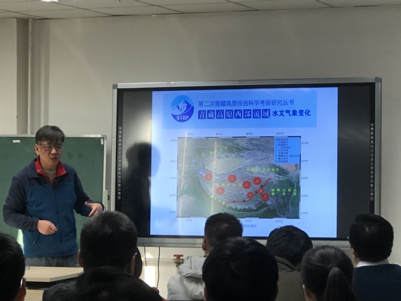 报告会上,刘景时研究员结合第二次青藏高原综合科学考察研究,首先介绍了青藏高原的自然地理概况及气候变化背景下“亚洲水塔”对周边区域社会经济发展的重要性,然后就青藏高原缺测区河流径流反演方法、冰川消融模型与WEB-DHM模型耦合方案、水文气象仪器观测现状、青藏高原水汽来源等进行了详细阐述,最后总结了青藏高原北部区域的冰川变化规律、冰川融水径流时空分布特征及冰湖溃决洪水灾害等最新成果。报告会后,刘景时研究员与参会师生进行了深入广泛交流。
