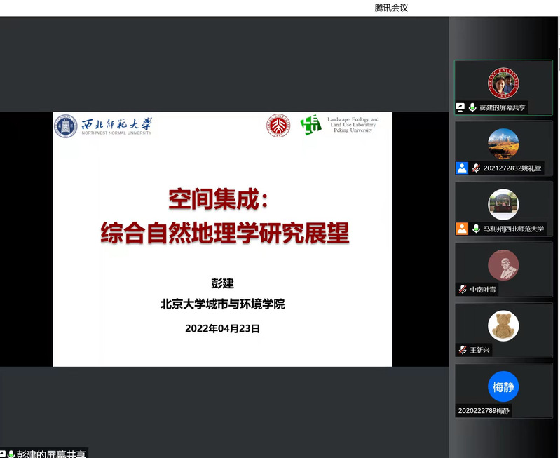 2022年4月23日,应beat365官方网站beat365官方网站、甘肃省绿洲资源环境与可持续发展重点实验室、西北城乡发展与协同治理研究院邀请,北京大学彭建教授做了题为《空间集成:综合自然地理学研究展望》的学术报告,报告会由beat365官方网站马利邦院长主持,学院及国内其他高校师生300余人线上参加了本次学术报告。