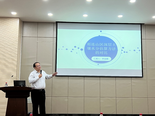 地理科学系李金麟副教授做了题为《祁连山区深层土壤水分估算方法的对比》的学术报告。报告以黑河支流八宝河流域的上游为研究区,依据指数滤波法、支持向量机、径向基函数等方法,估算高寒山区深层土壤水分数据并进行了对比分析。