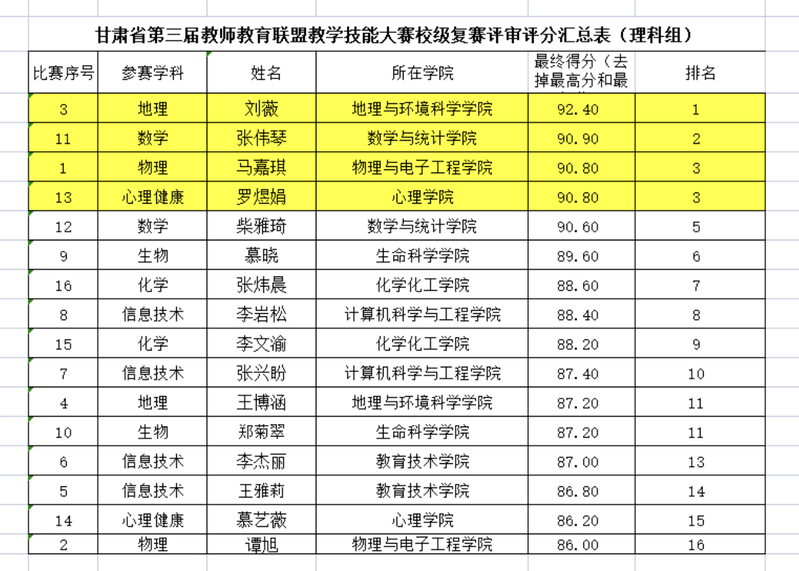 “甘肃高校教师教育联盟师范生教学技能大赛”已举办两届,各届均限定专业参赛。beat3652016届地理科学专业马林彪同学在首届大赛中获地理科学专业一等奖。刘薇同学是第二位地理科学专业代表学校理科组参加此省级教学技能大赛的本科生。