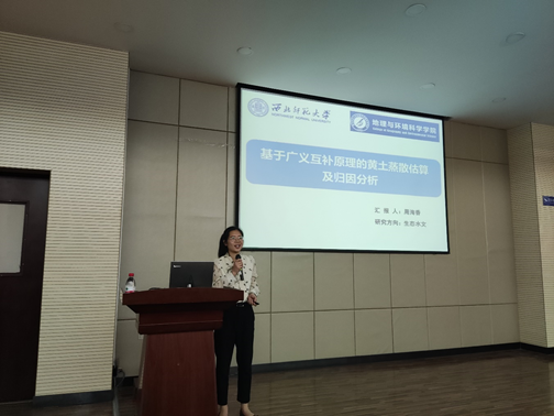 地理科学系周海香老师做了题为《基于广义互补原理的黄土高原蒸散估算及归因分析》的学术报告。报告以黄土高原为研究区,探究了广义蒸散互补模型参数αe在年尺度的取值范围、影响因素和内涵,并利用广义蒸散互补模型估算了黄土高原的蒸散量。结果表明参数αe是受干燥指数影响的综合参数,并展望了未来相关研究方向。