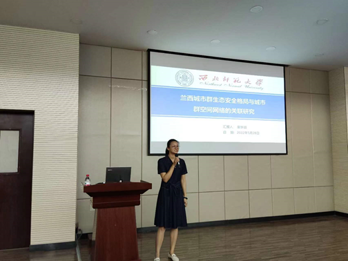 城市与资源学系童华丽副教授做了题为《兰西城市群生态安全格局与城市群空间网络的关联研究》的学术报告。报告主要从构建兰西城市群生态安全格局、城市群空间网络研究以及生态安全格局与城市群空间网络的关联研究三个方面展开,研究结果对于保障国家生态安全、优化区域内城市群空间网络结构、以及实现黄河上游地区高质量发展具有重要的实践意义。