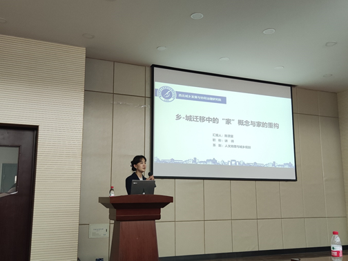 城市与资源学系陈贤斐老师做了题为《乡-城迁移中的“家”概念与家的重构》的学术报告。报告以人文地理学中的小尺度空间概念“家”为视角,以广州市“老漂族”为研究对象,探讨了他们如何适应迁入地城市以及建立社会关系的过程,从日常生活的角度分析了其处于生命历程转型阶段的复杂性。在此基础上,拓展了立足本土的兰州市乡-城型老年随迁照护者和陇西县留守老人案例。