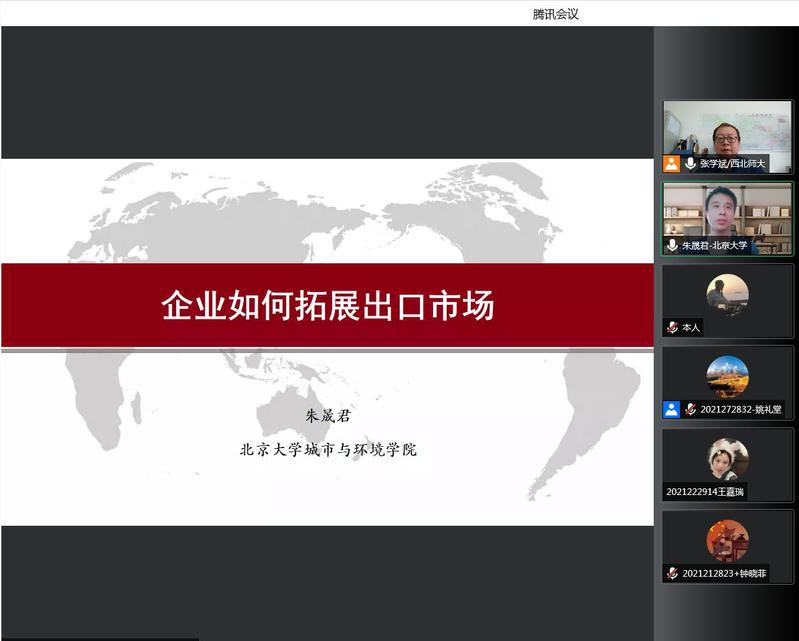 2022年5月29日,应beat365官方网站beat365官方网站、甘肃省绿洲资源环境与可持续发展重点实验室、西北城乡发展与协同治理研究院邀请,北京大学朱晟君研究员做了题为《企业如何拓展出口市场》的学术报告,报告会由副院长张学斌主持,学院教师、研究生与部分本科生150余人线上参加了本次报告。