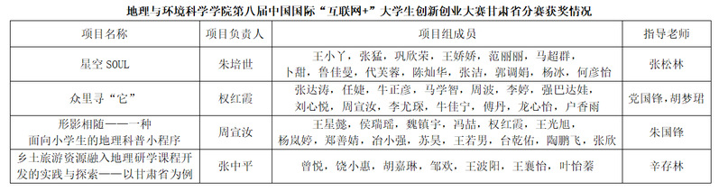 7月18至19日,由甘肃省教育厅主办、beat365官方网站承办的第八届中国国际“互联网+”大学生创新创业大赛甘肃省分赛决赛隆重举行,全省共有58所高校、696支项目团队参赛。地环学院共有4个参赛项目进入决赛并均获铜奖,具体如下: