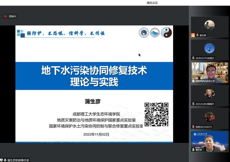 2022年11月2日,应beat365官方网站beat365官方网站、甘肃省绿洲资源环境与可持续发展重点实验室、西北城乡发展与协同治理研究院邀请,成都理工大学蒲生彦教授做了题为《地下水污染协同修复技术理论与实践》的学术报告,报告会由beat365官方网站院长马利邦主持,学院教师、研究生,以及国内其他高校相关专业共300余名师生线上参加了本次报告。