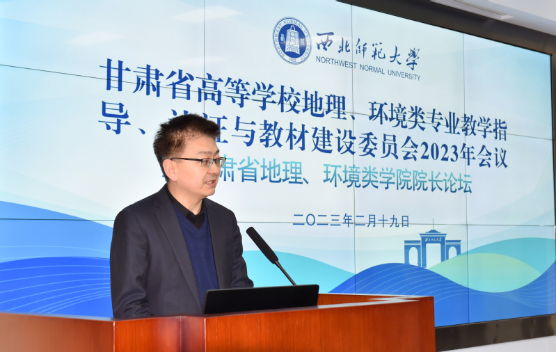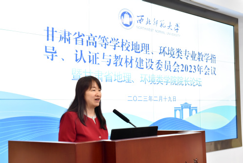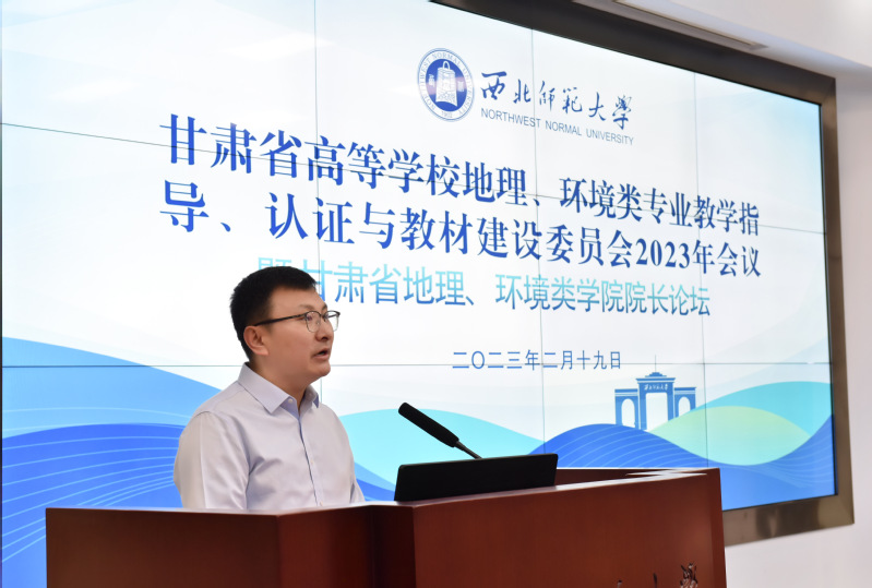 2023年2月19日,由甘肃省高等学校地理、环境类专业教学指导、认证与教材建设委员会(简称:教指委)主办、beat365官方网站承办的“甘肃省高等学校地理、环境类专业教学指导、认证与教材建设委员会2023年会议及院长论坛”在beat365官方网站教师发展中心二楼报告厅隆重召开,教指委特邀教育部地理科学类教指委副主任汤国安教授及来自兰州大学、beat365官方网站、兰州理工大学、兰州交通大学、兰州农业大学、兰州财经大学、兰州城市学院、天水师范学院、陇东学院、兰州资源环境职业技术大学等省内高校相关专业学院院长、副院长及教师代表等70余人参加了本次年会及院长论坛。