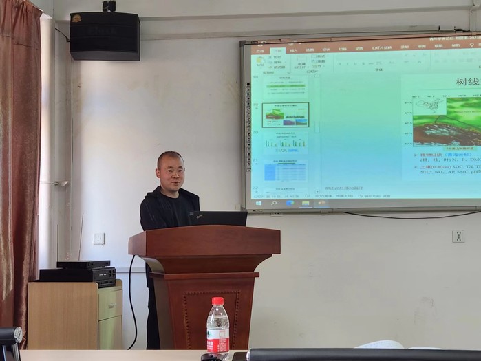 环境科学与工程系刘建国老师做了题为《祁连山常绿针叶林C、N、P时空特征及其影响因素研究》的报告,报告主要围绕祁连山森林生态系统植物和土壤C、N、P的空间特征、季节动态和异速关系,重点阐述了祁连山常绿针叶林C、N、P的时空特征及其驱动机制,对认识干旱区山地森林生态系统植被和土壤养分特征及其两者的互作关系提供了很好的视角。
