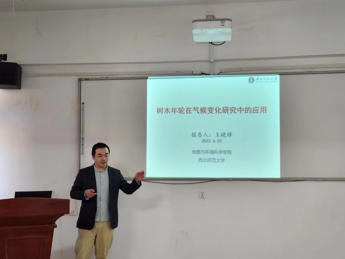 地理科学系王晓锋老师做了题为《树木年轮在气候变化中的应用》的报告,报告首先围绕什么是树木年轮、形成年轮的必要条件是什么等问题,介绍了树木年轮学的基础理论和研究的基本方法,最后结合青藏高原东北部祁连圆柏径向生长对极端干旱事件的脆弱性评估、贺兰山森林交错带油松-青海云杉树木生长的气候变化响应差异两个研究案例,介绍了树木年轮在气候变化中的应用,让大家对树木年轮学有了一个基本的了解和认识。