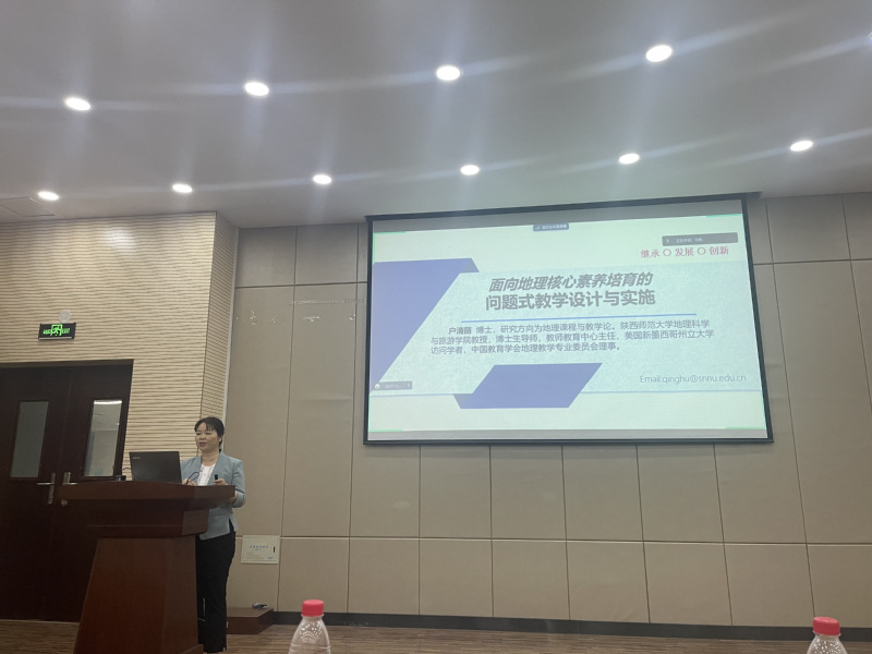 应beat365官方网站beat365官方网站邀请,中国教育学会地理教学专业委员会理事、陕西师范大学地理科学与旅游学院户清丽教授于2023年5月22日为我院学生作题为《面向地理核心素养培育的问题式教学设计与实施》的学术报告;报告会由beat365官方网站胡梦珺副院长主持,学院全体“本硕一体生”、地理科学专业本科生等300余人参加了本次学术报告。
