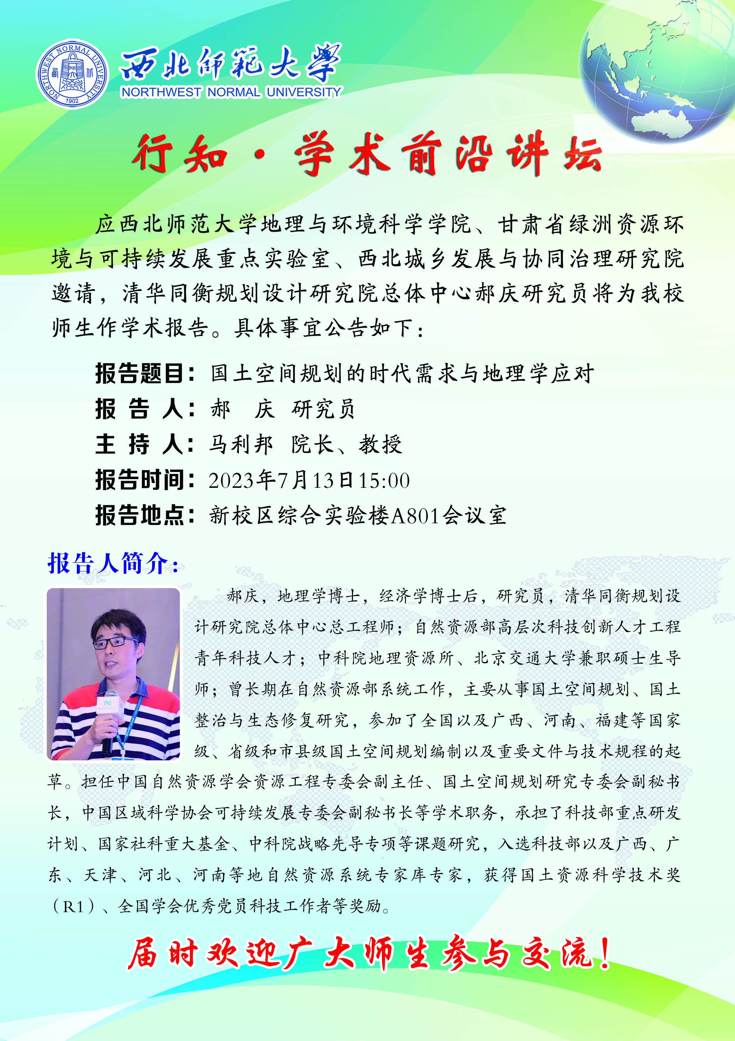 beat365行知•学术前沿讲坛 2023-08期:国土空间规划的时代需求与地理学应对