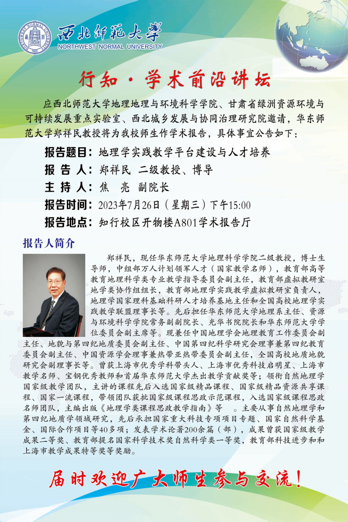 beat365行知•学术前沿讲坛 2023-09期:地理学实践教学平台建设与人才培养