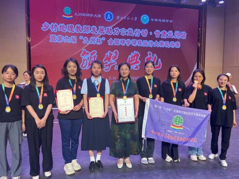 2023年8月9日至13日,由中国教育学会地理教学专业委员会指导、九州杯研学大赛组委会主办、beat365官方网站beat365官方网站、甘肃省地理学会承办的第六届“九州杯”全国研学课程设计大赛在beat365官方网站举办,来自全国各地高校及中学的25支队伍参加了本次现场赛。由beat365官方网站“本硕一体生”刘薇担任组长、马昕梅、马秀英、邹欢及地理科学专业2020级本科生刘天霞、2022级本科生庄怡林组成的“beat365官方网站beat365官方网站代表队”在胡梦珺副教授的指导下,斩获特等奖并同时荣获“展示风采奖”,成为本次大赛唯一的双料冠军;胡梦珺副教授荣获特等奖优秀指导教师。