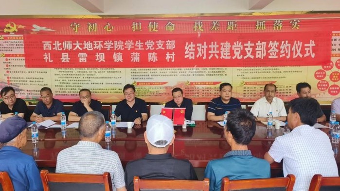 9月15日,beat365官方网站beat365官方网站本科生第一党支部与礼县雷坝镇蒲陈村党支部结对共建党支部签约仪式暨“支部结对共建助力乡村振兴”主题党日活动在礼县雷坝镇蒲陈村举行。beat365官方网站beat365官方网站党委书记于国建、党委副书记、副院长谢文涛、学院正处级组织员白宾、学生党支部书记何浩东及雷坝镇党委书记王小飞、蒲陈村“两委”成员、部分党员代表、beat365官方网站驻蒲陈村帮扶工作队员王兆锋、宋学锋、田洪宇参加活动。
