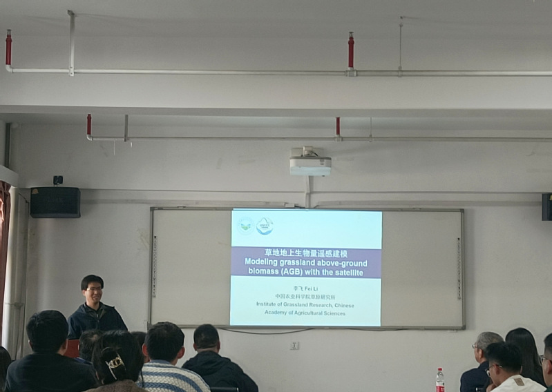 报告会上,李飞研究员阐述了草地生物量的概念以及国内外研究现状,并重点介绍了其在国外所开展的野外调查和学术成果;之后李飞研究员结合自己目前在内蒙古自治区开展的草地研究工作,介绍了星-空-地草地遥感监测网络建设情况,并强调全面提高草地信息化技术水平,调查与计算沿气候梯度放牧生态系统生物量-碳-水监测网络是今后的重点工作和科研方向。报告会后,与会师生和李飞研究员就国内外草地遥感监测技术差异、数据分析中的共线性、技术与科学关系等问题进行了探讨和交流。