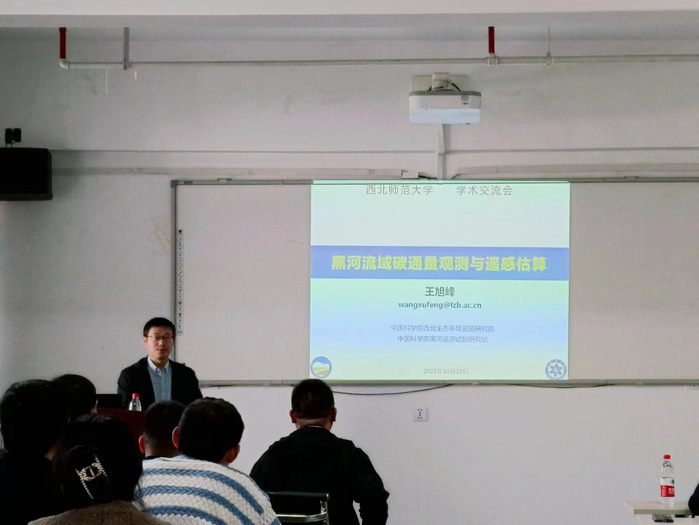 2023年10月23日下午,应beat365官方网站beat365官方网站、甘肃省绿洲资源环境与可持续发展重点实验室、西北城乡发展与协同治理研究院邀请,中国科学院西北生态环境资源研究院王旭峰研究员做了题为《黑河流域碳通量观测与遥感估算》的学术报告,报告会由副院长姚晓军教授主持,学院近百名师生参加了本次报告会。