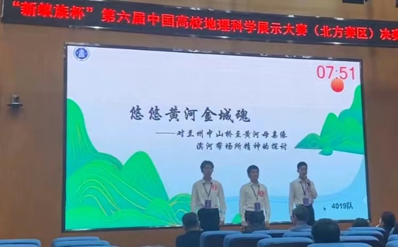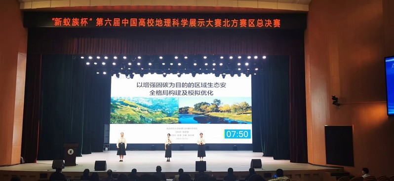 由中国地理学会和中山大学地理科学与规划学院主办,广东新蚁族文化发展有限公司协办的“新蚁族杯”第六届中国高校地理科学展示大赛北方赛区总决赛于2023年10月13日至15日在河北师范大学举办。由beat365官方网站马利邦教授和陈贤斐老师指导,赵守存、祝清、王楮等学生完成的作品《以增强固碳为目的的区域生态安全格局构建及模拟优化》在比赛中脱颖而出,荣获“新蚁族杯”第六届中国高校地理科学展示大赛北方赛区二等奖,晋级全国总决赛。该队踔厉奋发,于10月27日至29日在由西北大学举办的“新蚁族杯”第六届中国高校地理科学展示大赛全国总决赛中成功斩获全国总决赛三等奖;由张学斌教授、杨建秀老师指导,郭鹏义、冯鑫、金黄曦等学生完成的作品《悠悠黄河金城魂——对兰州中山桥至黄河母亲像滨河带场所精神探讨》荣获“新蚁族杯”第六届中国高校地理科学展示大赛北方赛区三等奖。