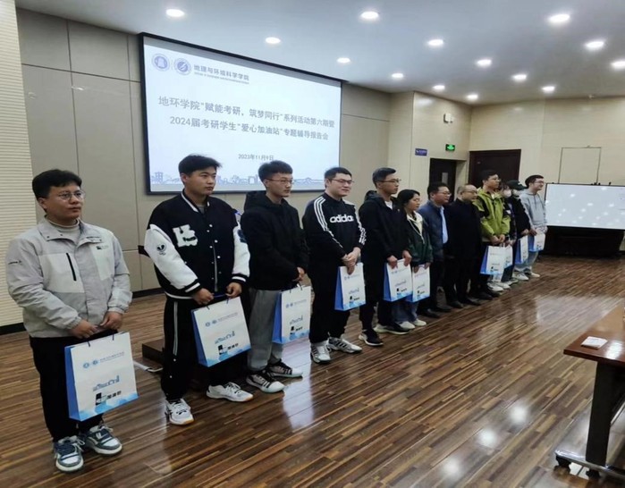 报告会上,学院党委副书记、行政副院长谢文涛简单介绍专题辅导报告会情况,他强调,距离2024年考研还有不到43天,时间对于每一个备考的学生来说已经迫在眉睫。为此学院特别开展本次“爱心加油站”的专题活动,算是一次冲刺动员大会,也是学院向大家考研战过程中的努力和艰苦表达真切的慰问,一起为大家加油鼓气!目前,考研深造仍然是大部分毕业生的选择,培养一批具有创新精神的人才关系到国家科研事业发展的前途和民族的未来,同学们应向更高层次的学习迈进,不断挖掘自身潜力。学院领导为2024届考研学生代表发放了“考研爱心大礼包”,希望参加考研的每一位同学都成功“上岸”,实现自我的超越。