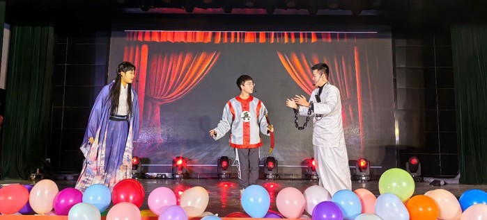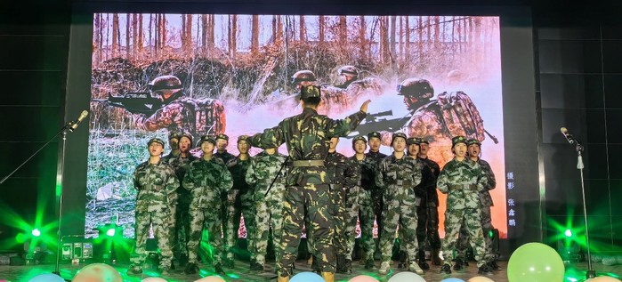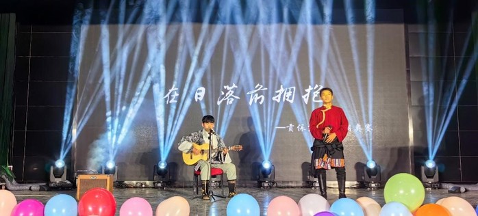 春有约,花不误,落日与晚风,朝朝又暮暮!晚会以“踔厉奋发,迎风前行”为主题,在民族舞《起舞山水间》中拉开帷幕,一首《是老师是学生》唱响了深情浓烈的师生情谊;小品《女驸马》、《后宫笑传》幽默诙谐,表演生动,引起了现场观众的阵阵掌声和欢笑;歌曲串烧《倾城回归线》,弹唱《在日落前拥抱》、《鼓楼》,合唱《你的答案》、《海阔天空》,乐队合唱《向阳花》,朗诵《何为青年》把晚会推向了一个又一个高潮,集体舞蹈《从戎青年》《斗舞》朝气蓬勃,激情飞扬,洋溢着生命力和感染力,展现了青年学子的勇气与担当。