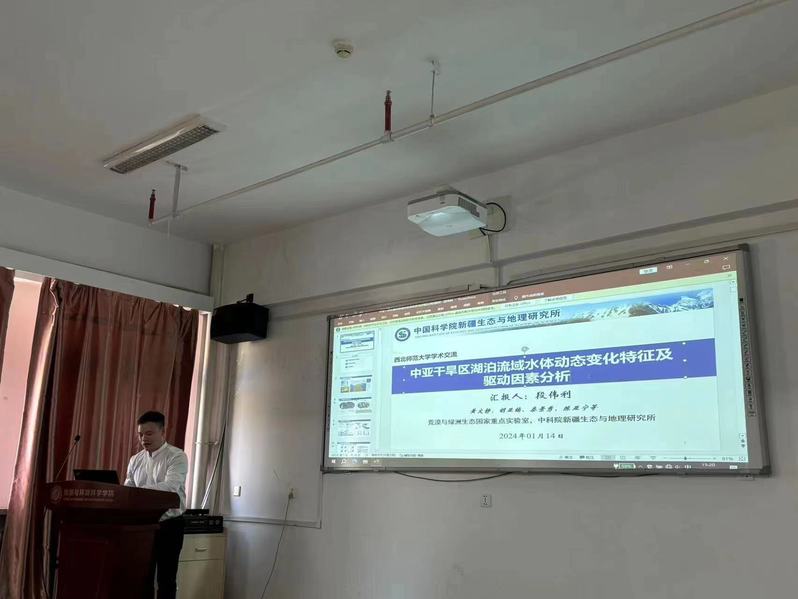 2024年1月14日,应beat365官方网站beat365官方网站、甘肃省绿洲资源环境与可持续发展重点实验室、西北城乡发展与协同治理研究院邀请,中国科学院新疆生态与地理研究所伊犁河流域生态系统研究站(天山积雪雪崩研究站)刘铁研究员、中国科学院新疆生态与地理研究所段伟利研究员分别做了题为《中亚大湖区水与生态系统相互作用和协同管理》、《中亚干旱区湖泊流域水体动态变化及驱动因素分析》的学术报告,报告会由我院副院长焦亮主持,学院部分老师、研究生线下参加了本次报告。