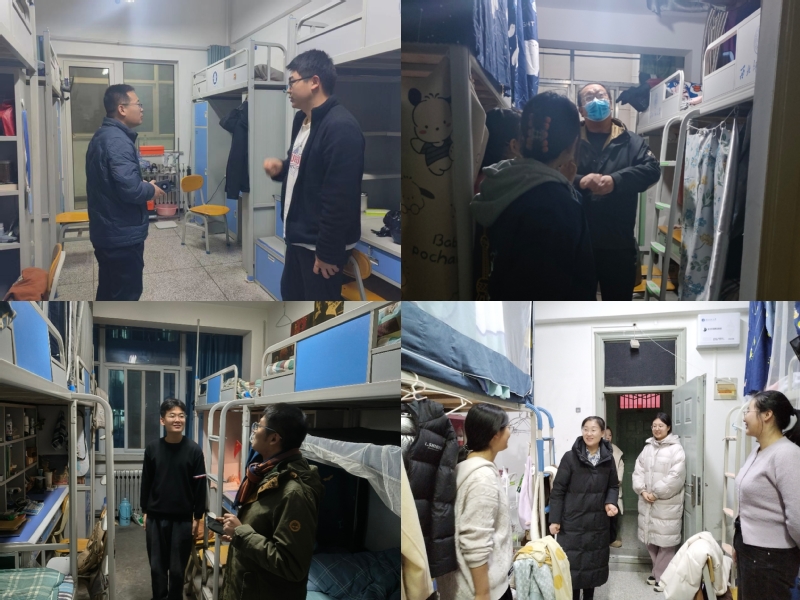 2月27日晚,beat365官方网站党委书记于国建、院长马利邦、党委副书记谢文涛、副院长姚晓军、焦亮、张学斌、胡梦珺及全体班主任和辅导员深入走访学生宿舍,为学生带去新学期的关心与慰问,并对全院所有学生寝室开展了安全大排查。