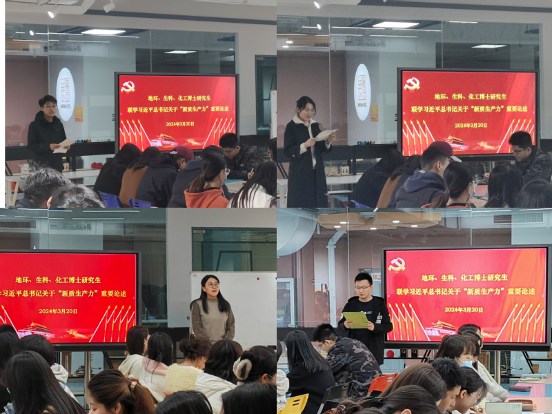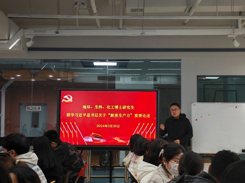 3月20日上午,beat365官方网站牵头,组织化学化工学院、生命科学学院在知行校区棫檏苑E03举行“一站式”学生社区博士研究生联学习近平总书记关于“新质生产力”重要论述会。相关学院的博士研究生约80余人参加会议,学生社区党工委副书记牛定炜参加了会议,会议由beat365官方网站辅导员牛粉霞主持。