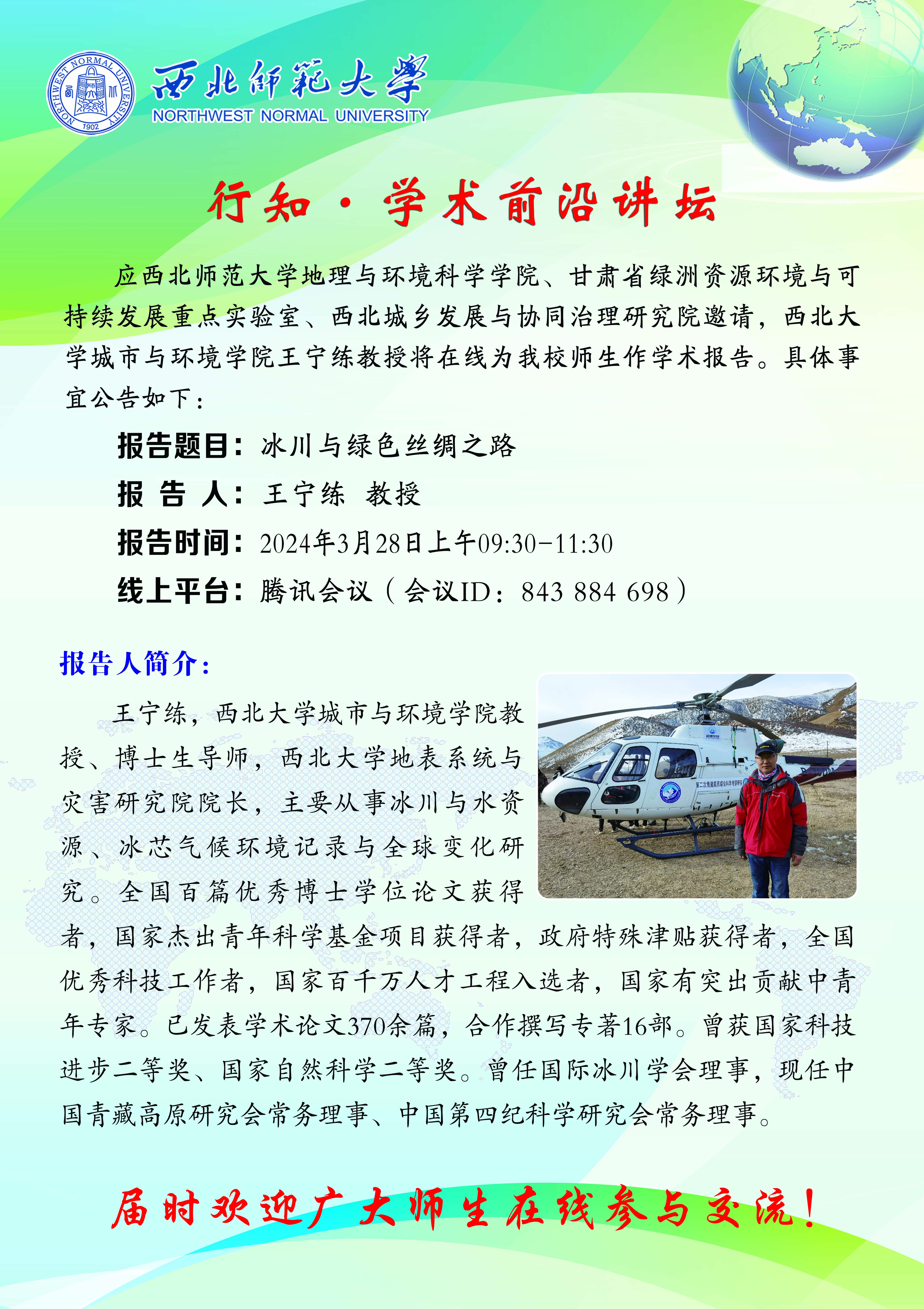 beat365行知•学术前沿讲坛 2024-03期:冰川与绿色丝绸之路