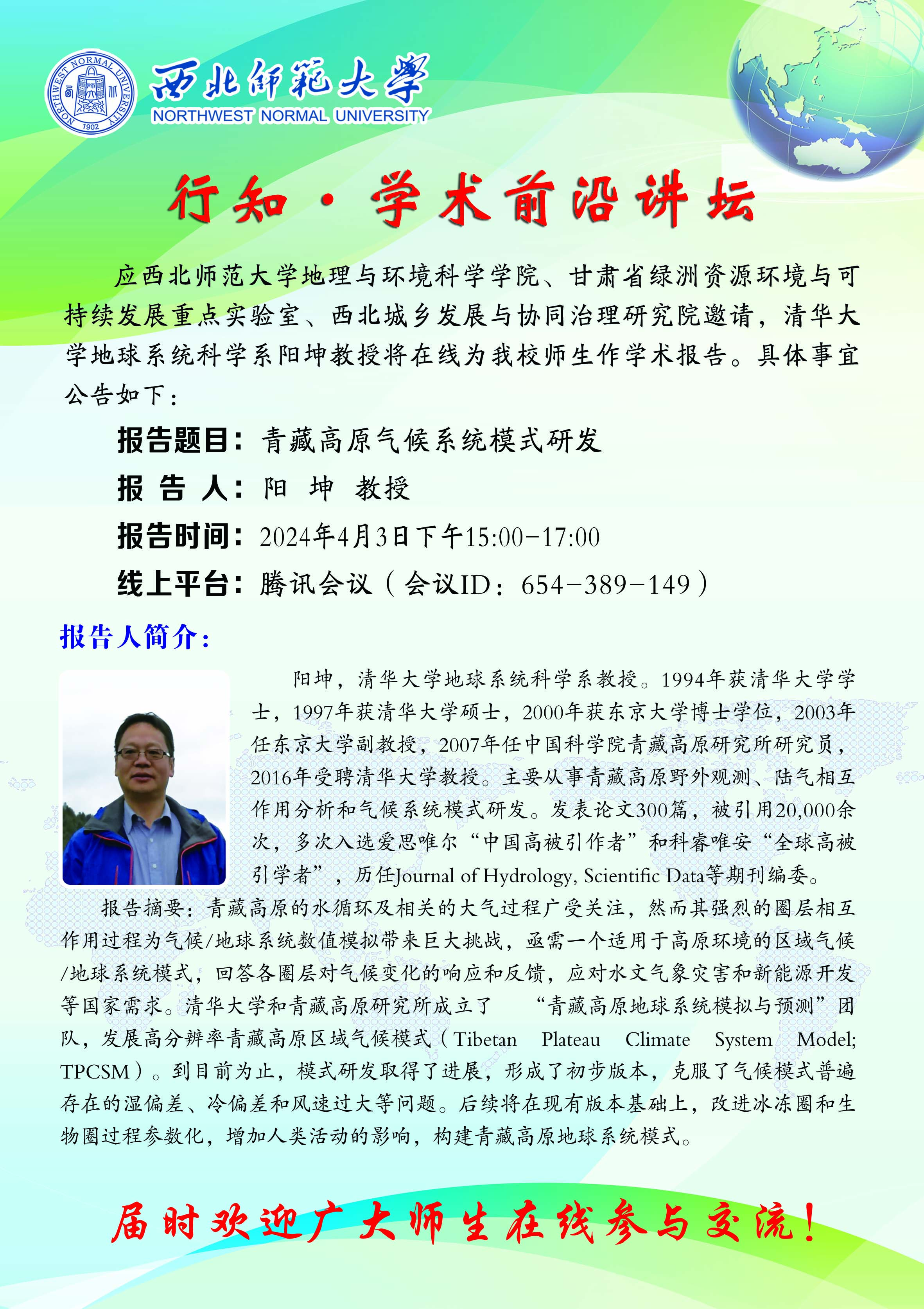 beat365行知•学术前沿讲坛 2024-04期:青藏高原气候系统模式研发