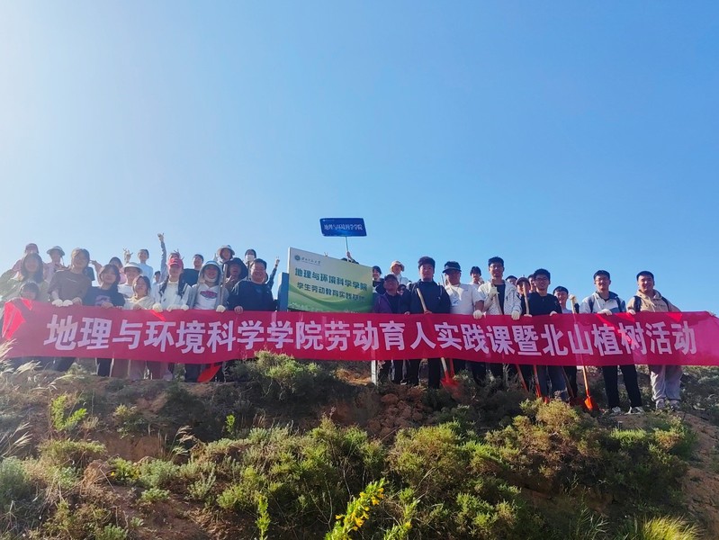 5月9日上午,beat365官方网站在知行校区北山绿化基地开展了劳动教育实践课暨北山植树活动。学院党委书记于国建、辅导员杜波、专职辅导员及2023级本科生参加了活动。