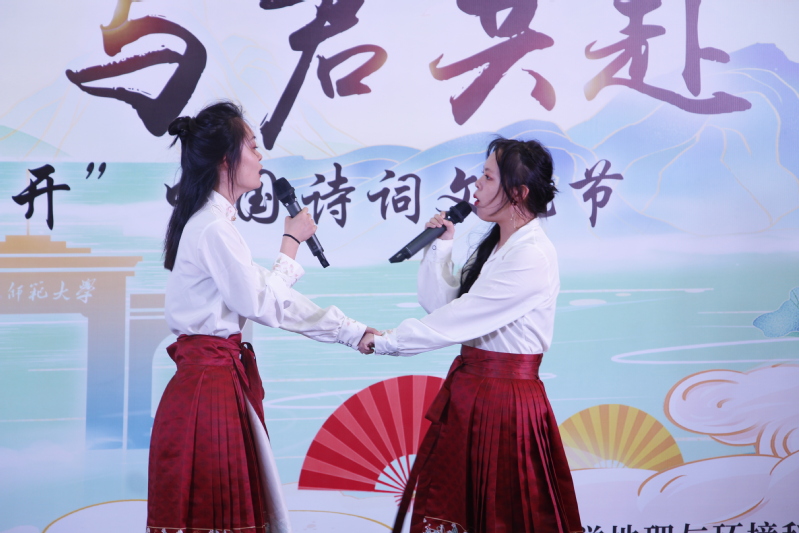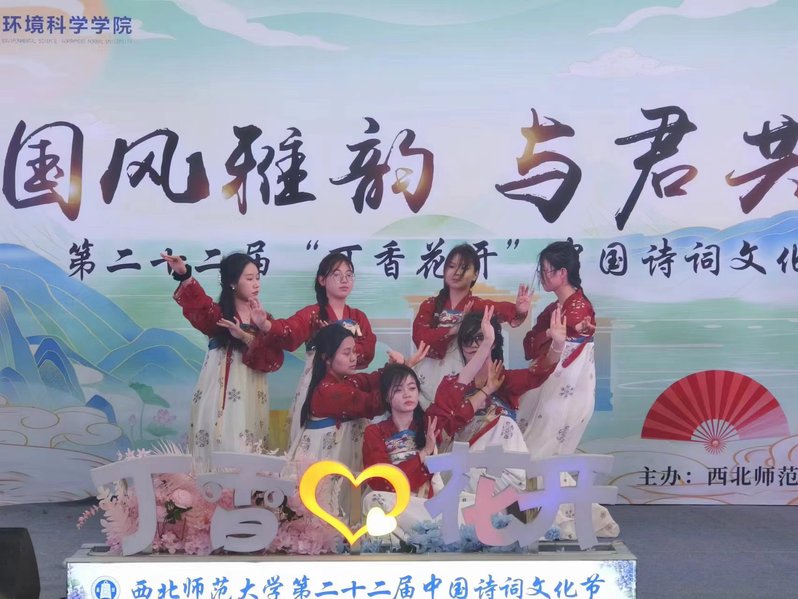 中国诗词文化节以“国风雅韵 与君同赴”为主题,学生以朗诵、歌唱、舞台剧等多种形式展演了丰富多次的节目,其中舞台表演《忆长安》《写给春天的诗行》等节目充分展现了古典之美;歌曲《桃李满天下》《红尘客栈》《霍元甲》《江南》等表演承载了中华传统文化中的社会理想、家国情怀等重要文化基因,带领大家感受不一样的中国;诗朗诵《纬天经地》等节目表达对西北师大和beat365的一片赤子之情。