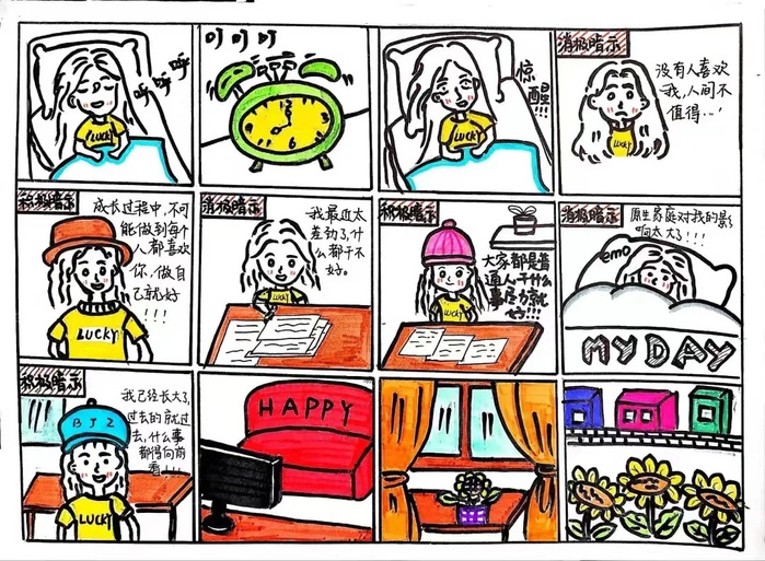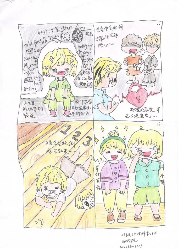 2024年4月,beat365官方网站顺利开展了“漫谈心理,画出心声”心理漫画比赛,同学们创作了一幅幅“悦心”又“赏心”的作品。让我们一起来欣赏地环学子温暖又治愈的漫画吧!